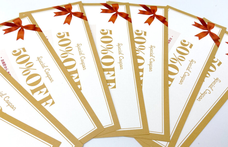 リーフレットは最小部数が50枚〜ですが、クーポン券は10枚から印刷できます。